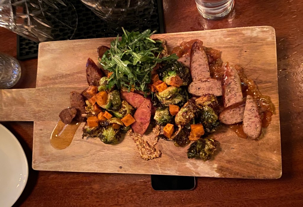 For food we did the meat platter which was all exotic sausages and an order of burnt ends. I don’t remember what all of the meats were but they were fun like pheasant and other wild game. The burnt ends are served with tortillas so you can eat them like tacos.