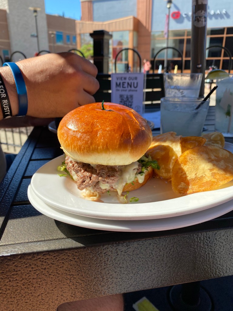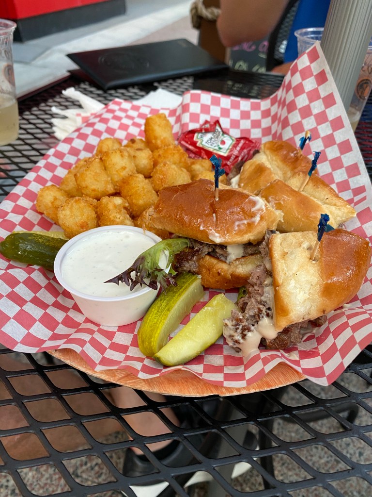 Last burger stop of Burger Week! Beef patty, toasted brioche bun and toppings include grilled wild mushrooms and a white truffle teriyaki sauce. The nice kitchen staff cut the burger into four pieces which was so nice! We got tater tots as our side item. The sauce and mushrooms on this burger were delicious. The patty itself wasn’t my favorite. It was a good last burger to end the week though.