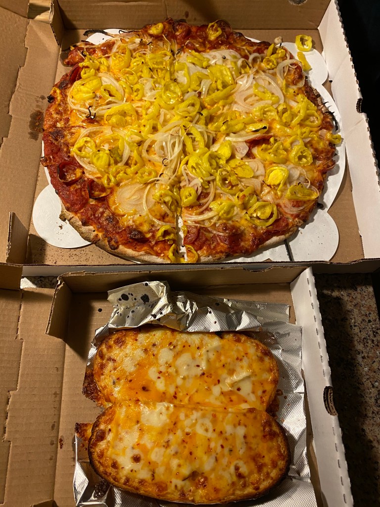 Domino’s delivery – there are quite a few other times we ordered Domino’s that aren’t pictured.