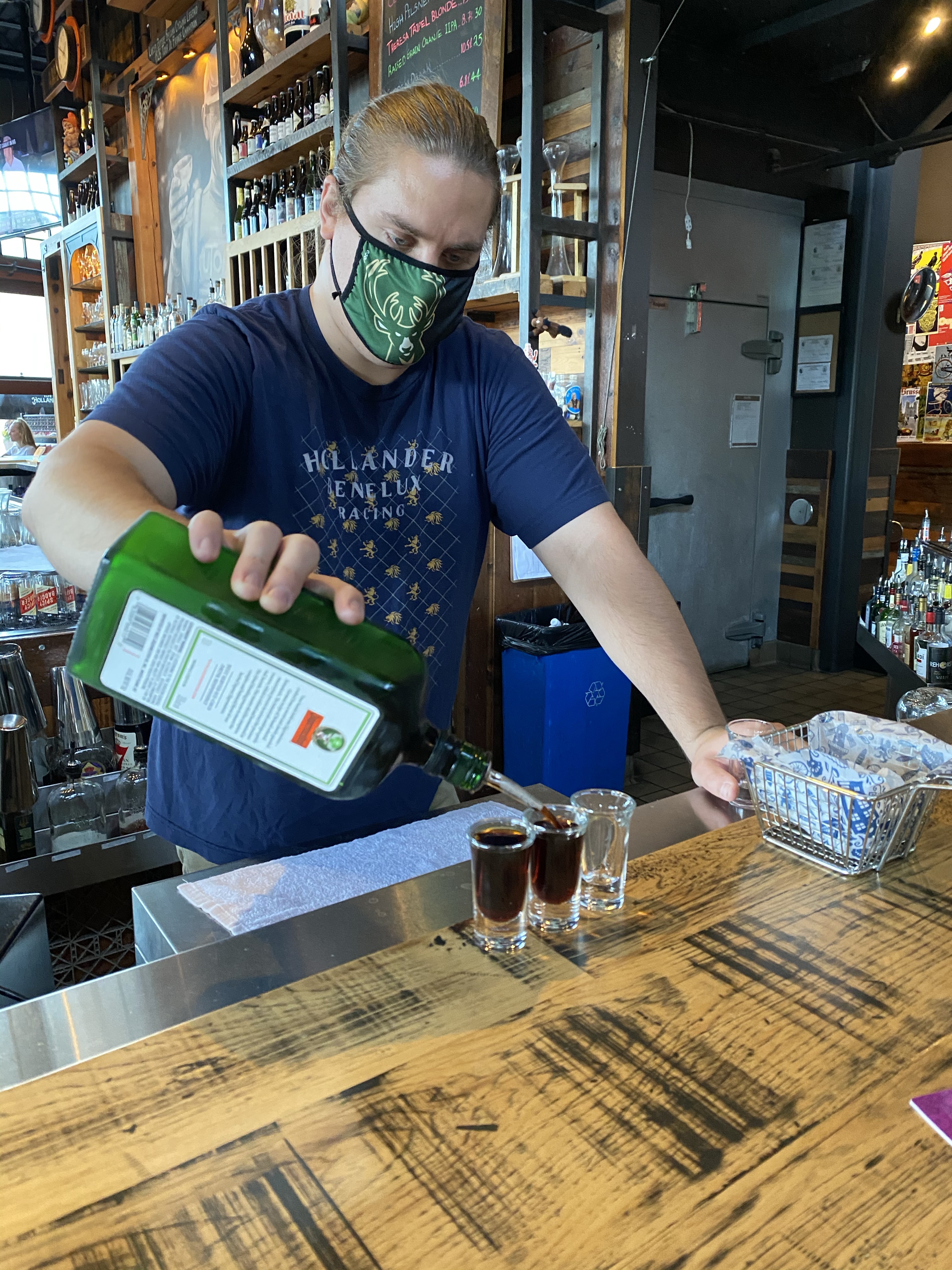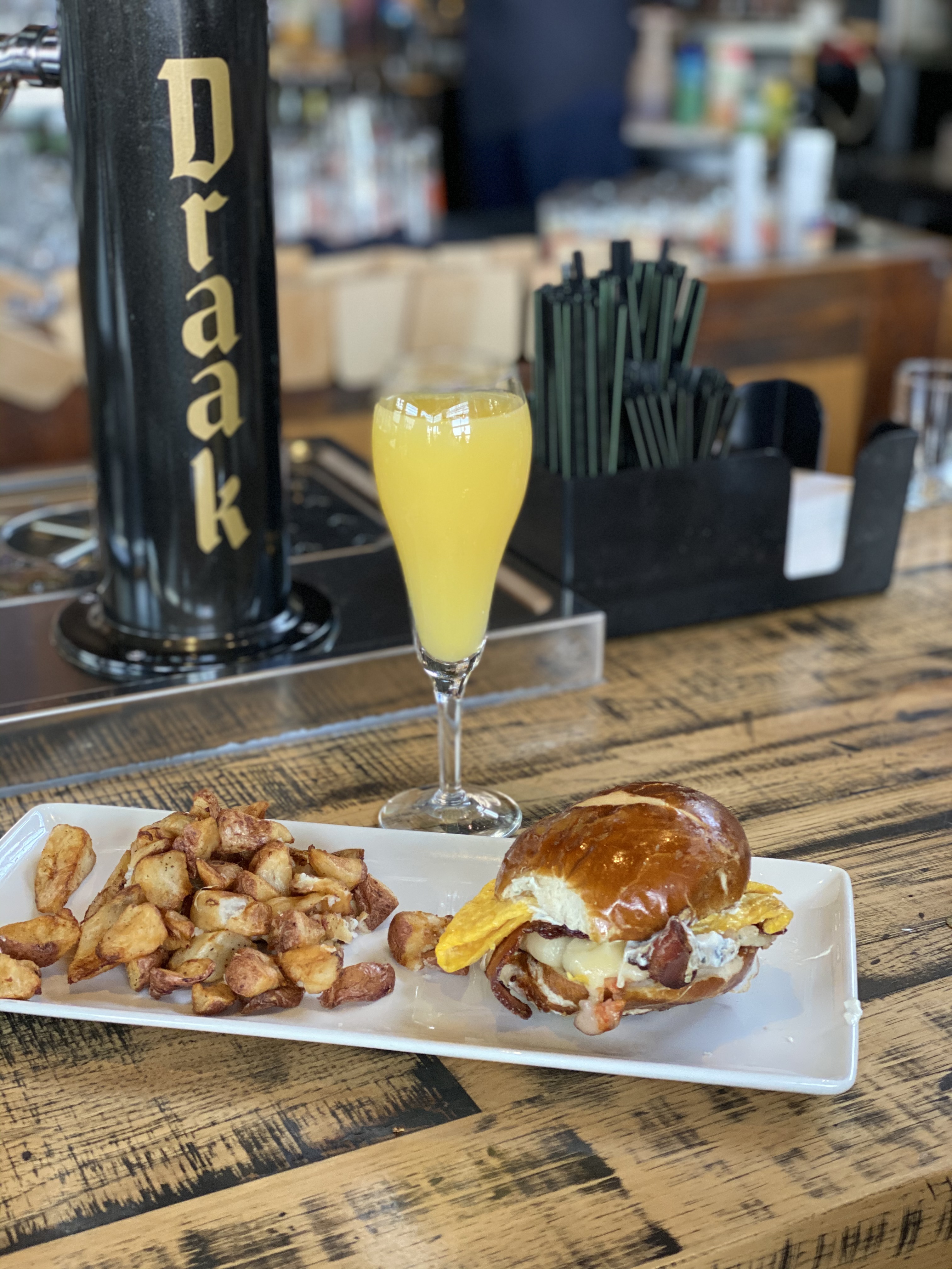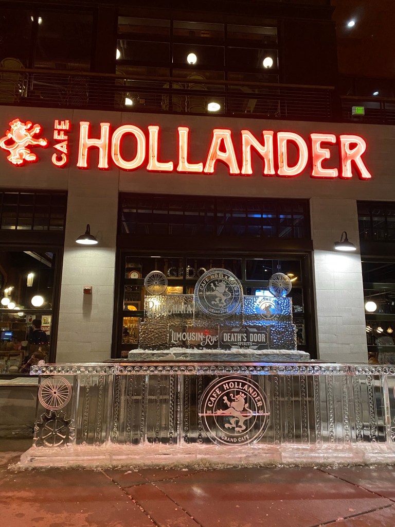 Cafe Hollander – This is one of our favorites in Madison and it is in our neighborhood so also our most frequented restaurant. See a separate post about Cafe Hollander here. One of the highlights of 2020 at Hollander was the ice bar in February. It was outside in the middle of winter and you can do shots out of ice shot glasses that you can smash after drinking the booze. Cafe Hollander was one of the first places we went after restaurants started to re-open for in person dining. They had a massive patio where we could bring our puppy to hang out. Since patio season has ended, we sit at the bar where there is social distancing in between parties. Highly recommend the pretzel breakfast sandwich.