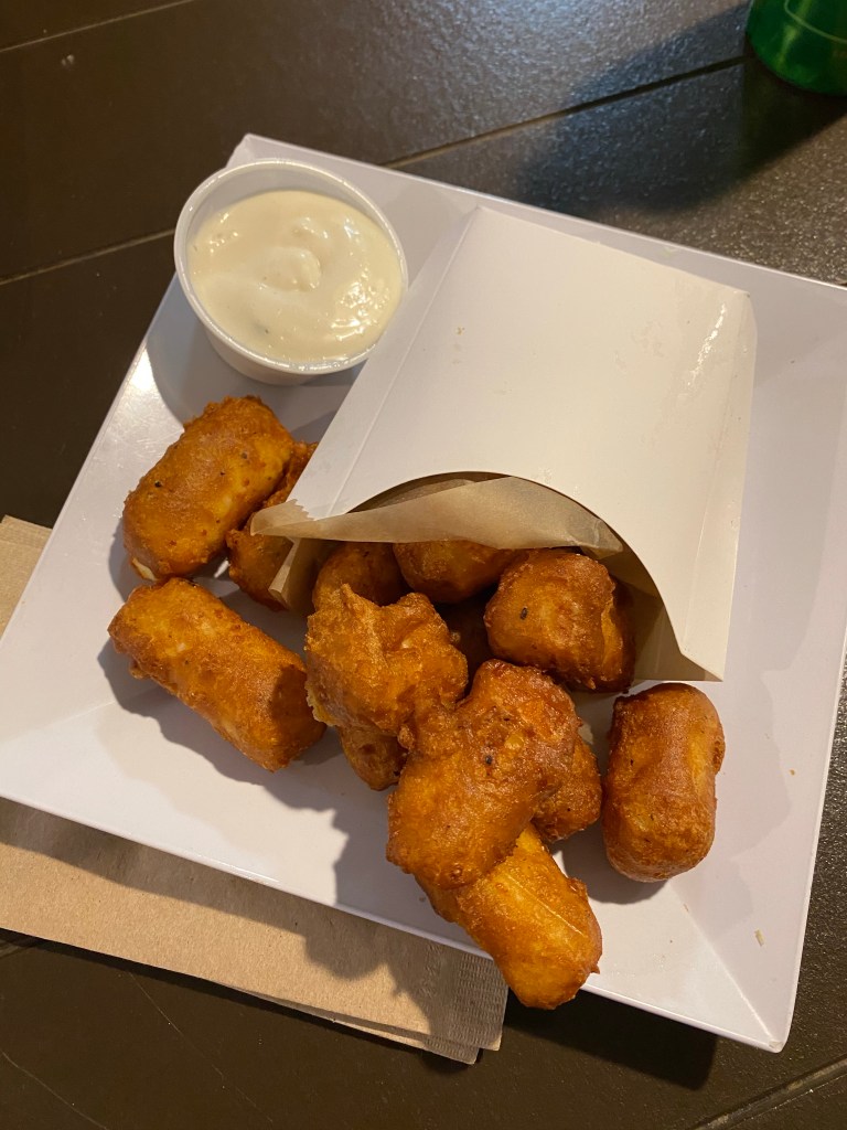 Cheese Curds – Living in Wisconsin, I fit in well with my love of cheese. One of the specialties here is cheese curds which are kind of like mini mozzarella sticks but made with different types of cheeses. They are usually served with house made ranch. Click here for more on cheese curds I had this year.