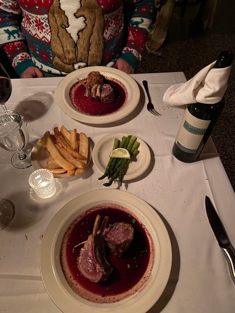 Tornado Room – We went here on my birthday. It is an old school supper club spot. Brian folded the wine menu and told me to pick one without looking at the price. For apps we had frog legs, escargot, oysters and scallops served with scalloped potatoes. We played paper rock scissors to decide between venison and lamb and ended up going with the venison. It was such an incredible meal.