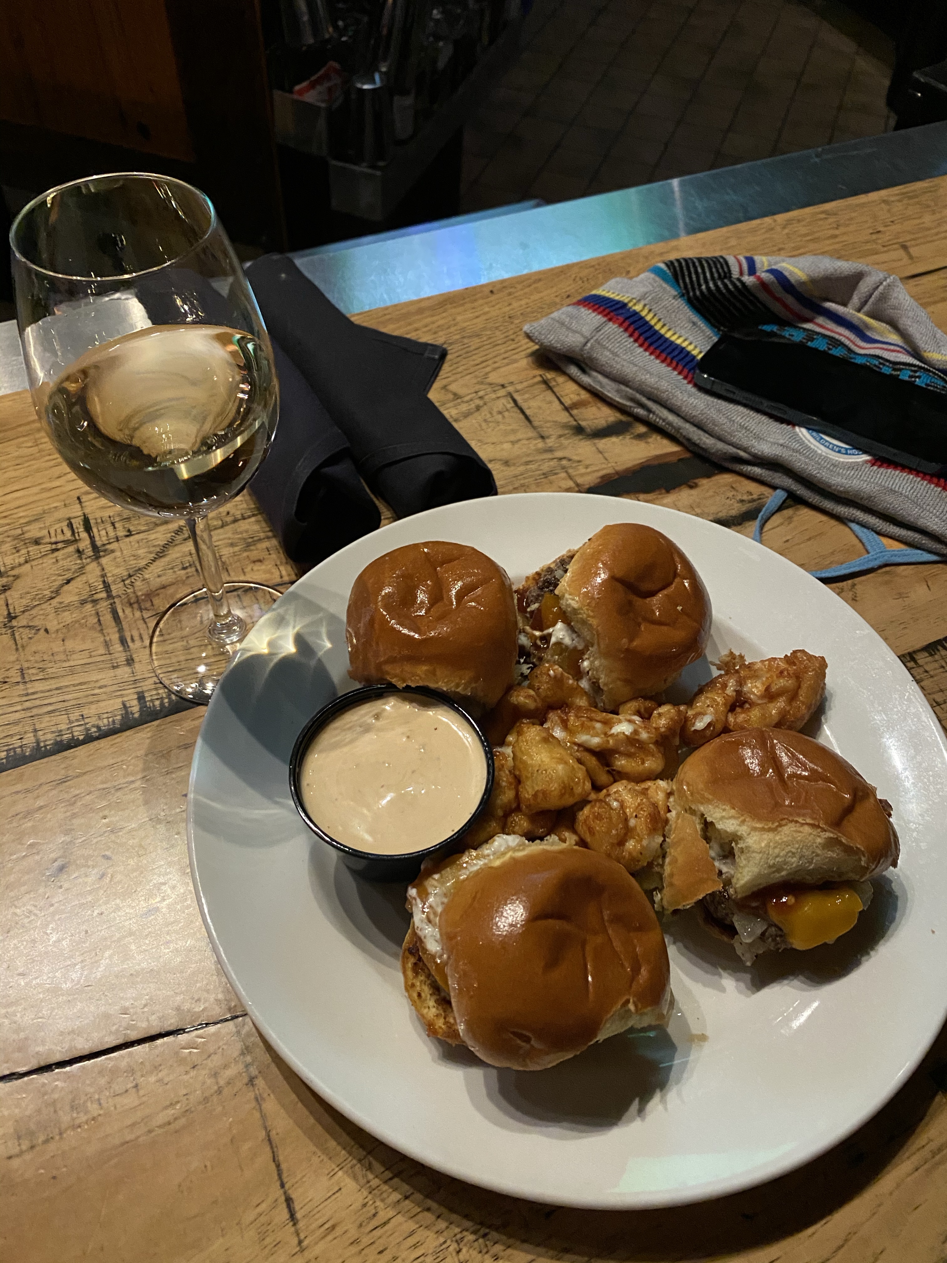 Cafe Hollander. As per usual, we hit Hollander this month. The dish on the right is our Gibson special which is the slider app and the cheese curd app combined into one.